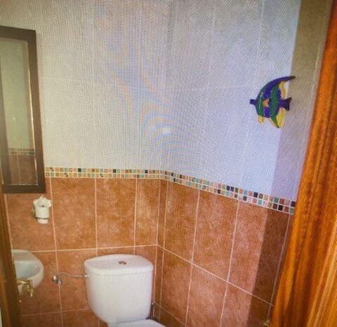 Entrada con puerta de seguridad. La primera planta consta de: un aseo, escalera de acceso a las demás estancias, cocina y salón.
