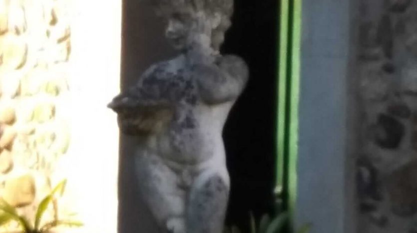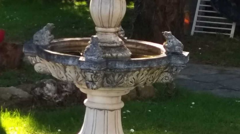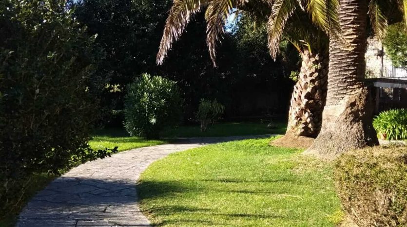 La edificación se sitúa sobre una parcela llana de 1.260 m², que cuenta con diversos árboles frutales, palmeras, un pozo de agua de manantial, piscina, porche y zona de barbacoa.