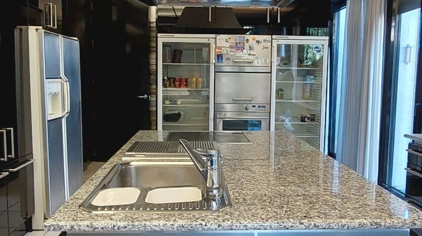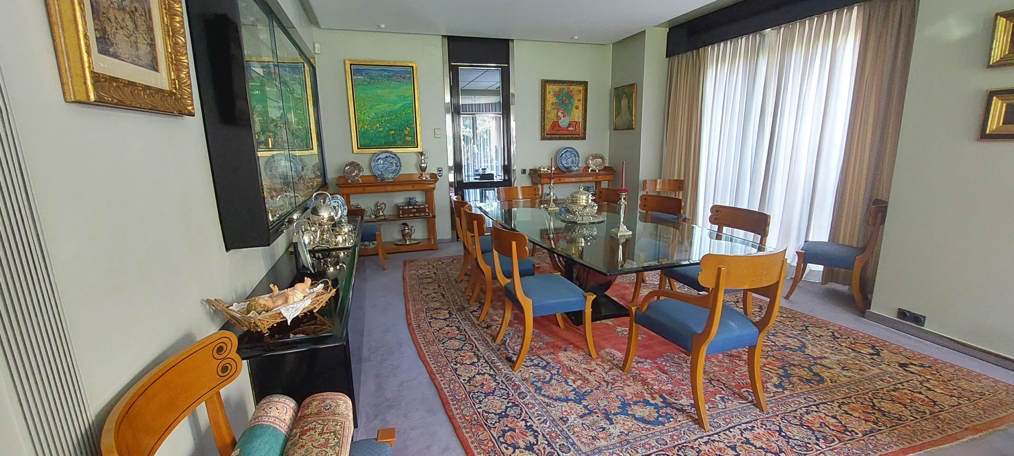 主楼层: 设有优雅的客餐厅,可直接通往花园和泳池。宽敞的厨房连接凉亭和夏季客厅。此外,该层还设有一间多功能卧室和客用洗手间,提供了在一层即可舒适生活的便利性。