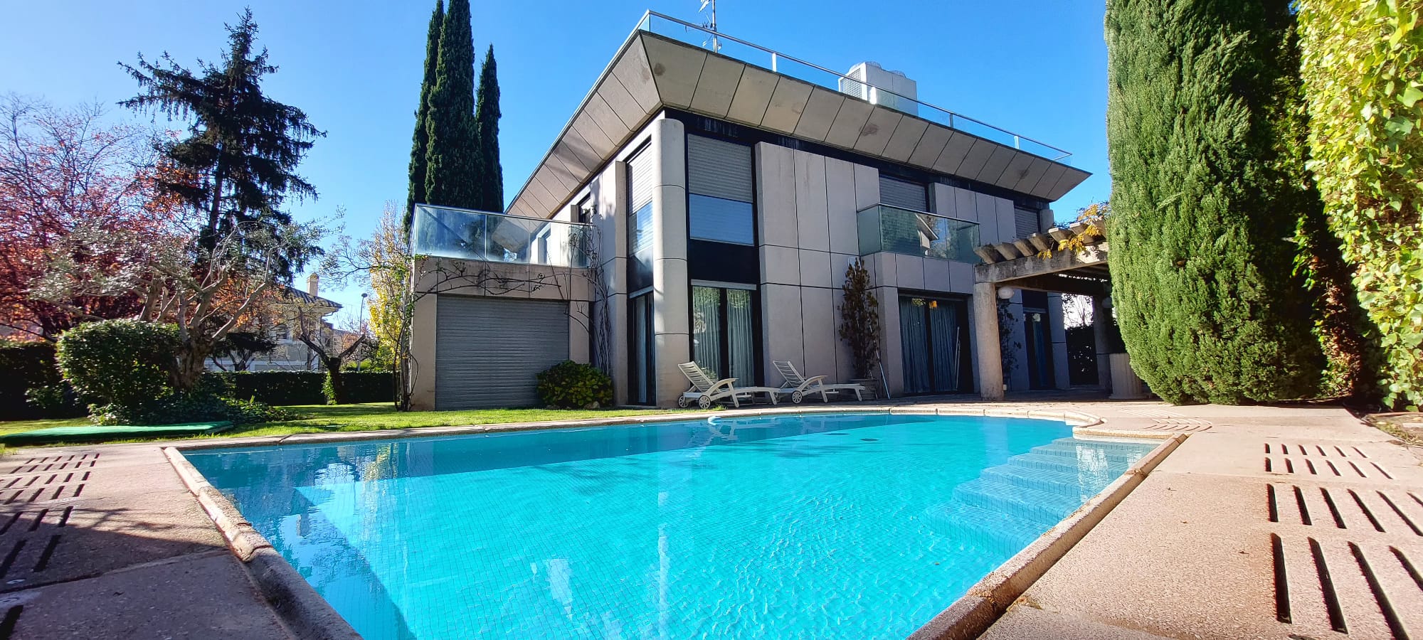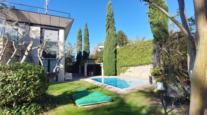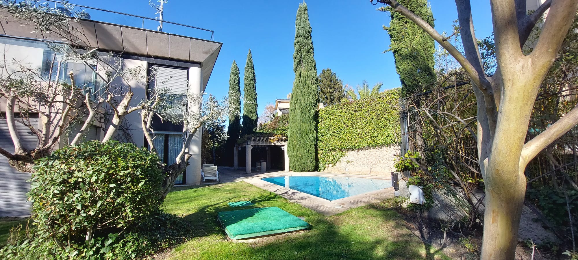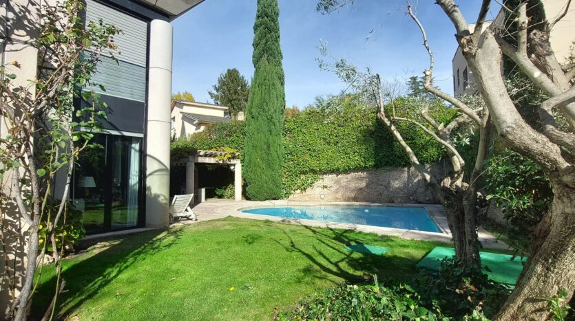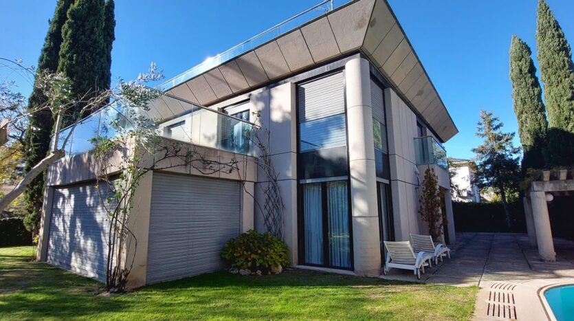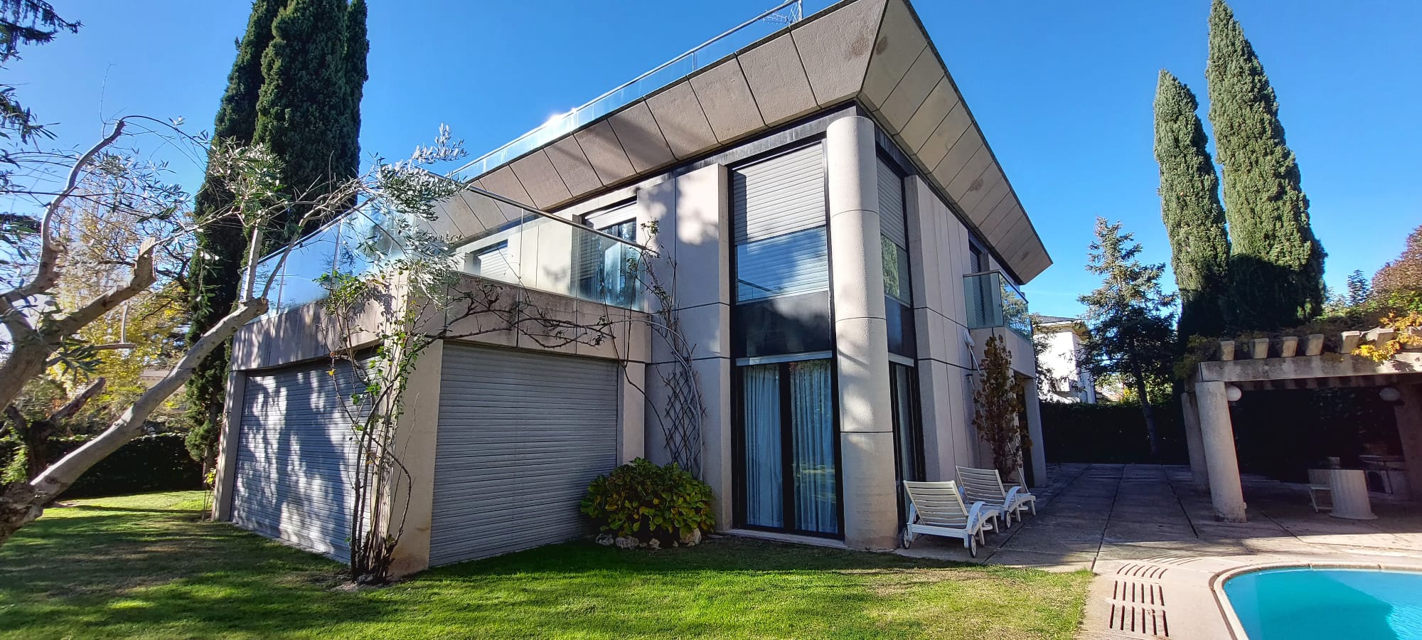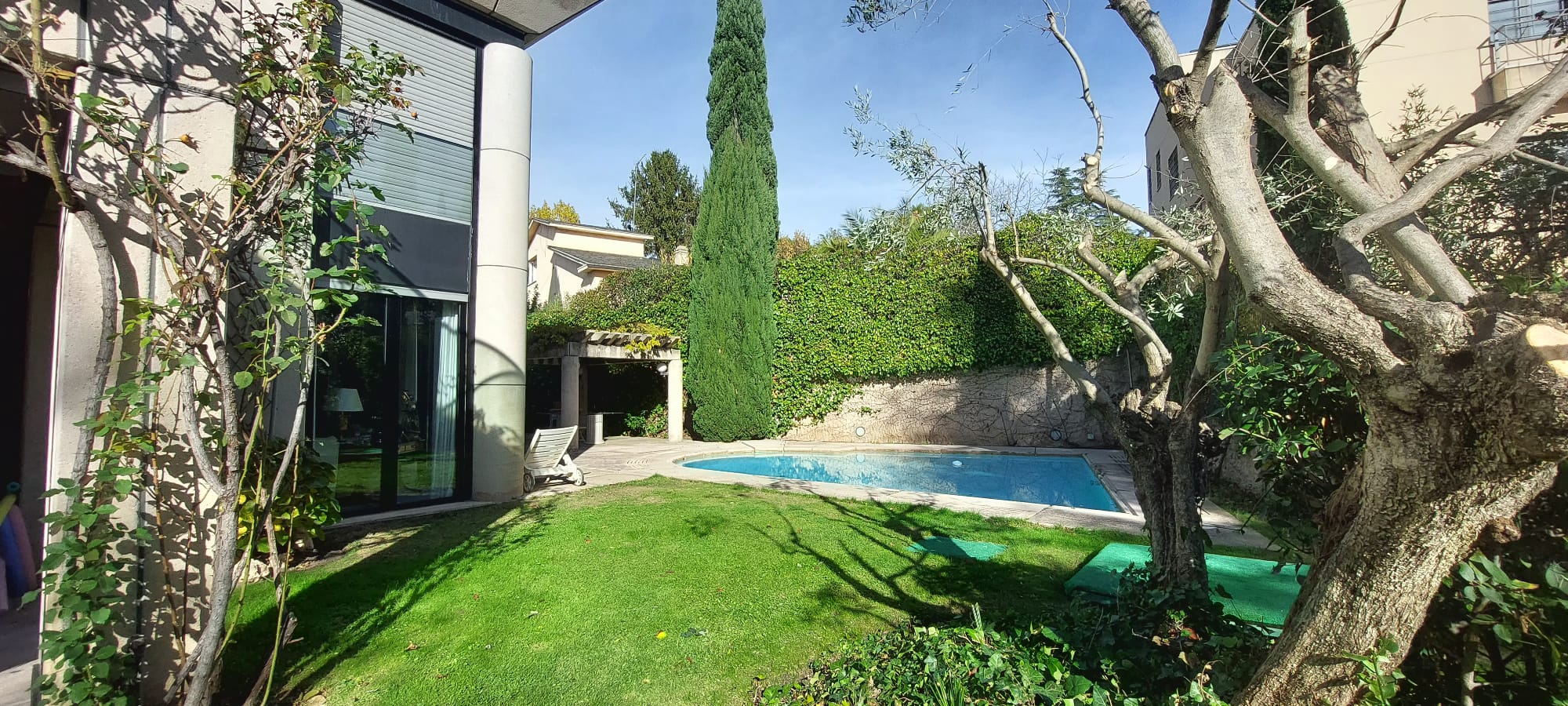 花园植被茂密,确保了居住的绝对私密。户外设有凉棚、泳池以及配有安全卷帘的可转换门廊。